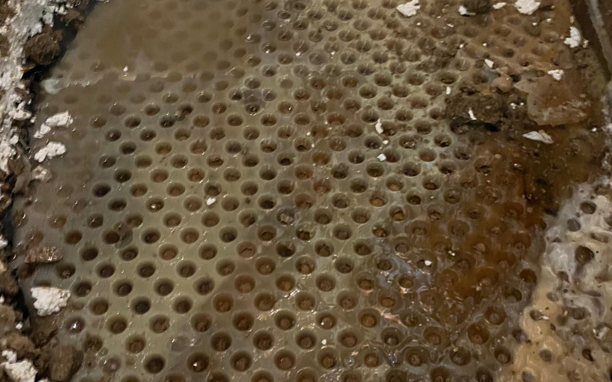 Vzhledem k vyšší finanční náročnosti této technologie se v některých případech uplatňuje i celoplošná injektáž, která je ekonomicky výhodnější. Reálné chování gelu a výsledné bariéry bývá obtížné zachytit v běžných podmínkách, proto je fotografie injektážního gelu pořízena ze zakázky, kde jsme měli možnost tuto technologii a její účinky podrobně prozkoumat.